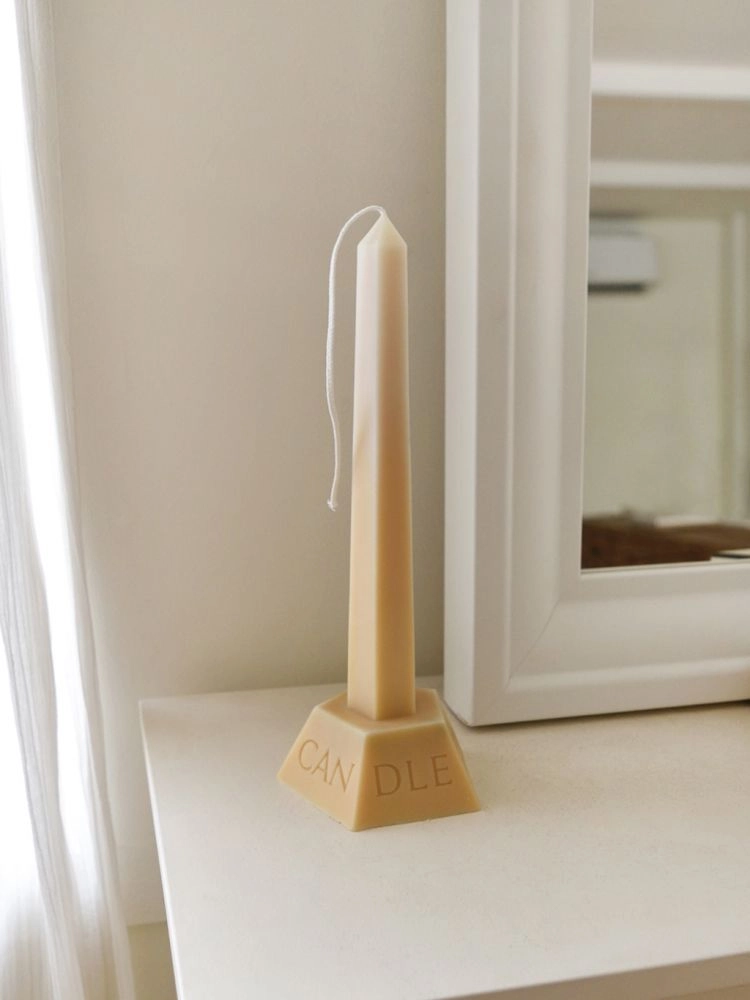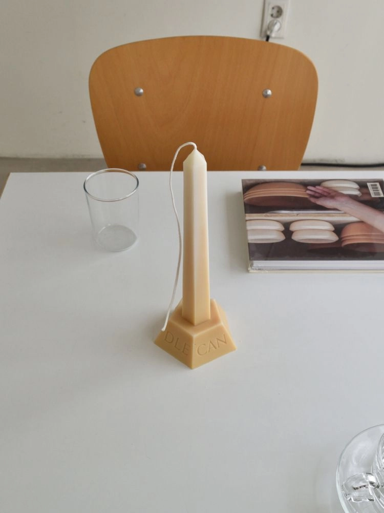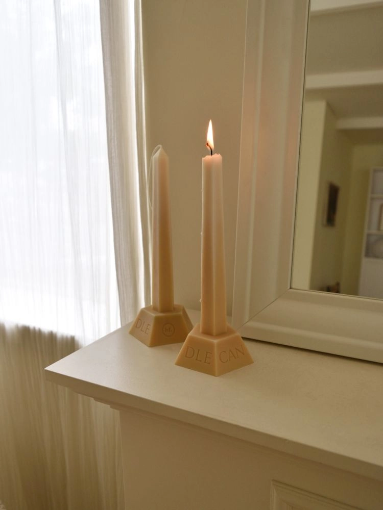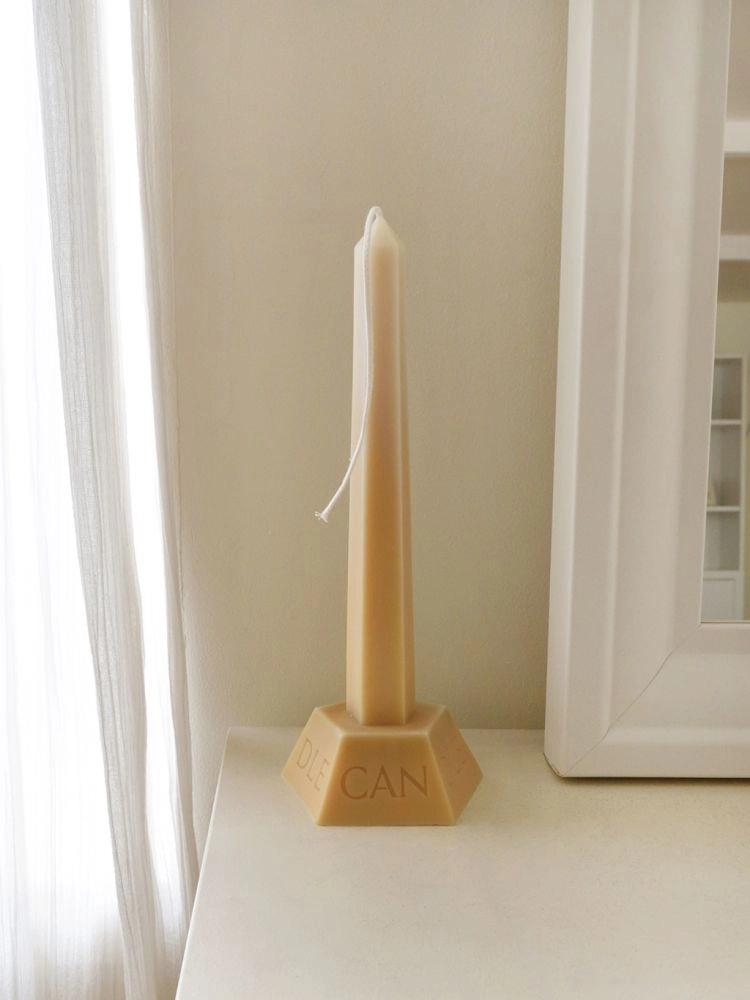 기둥 부분은 길고 직선적인 형태로 공간을 더욱 우아하게 만들어 주며, 비즈 왁스와 소이 왁스를