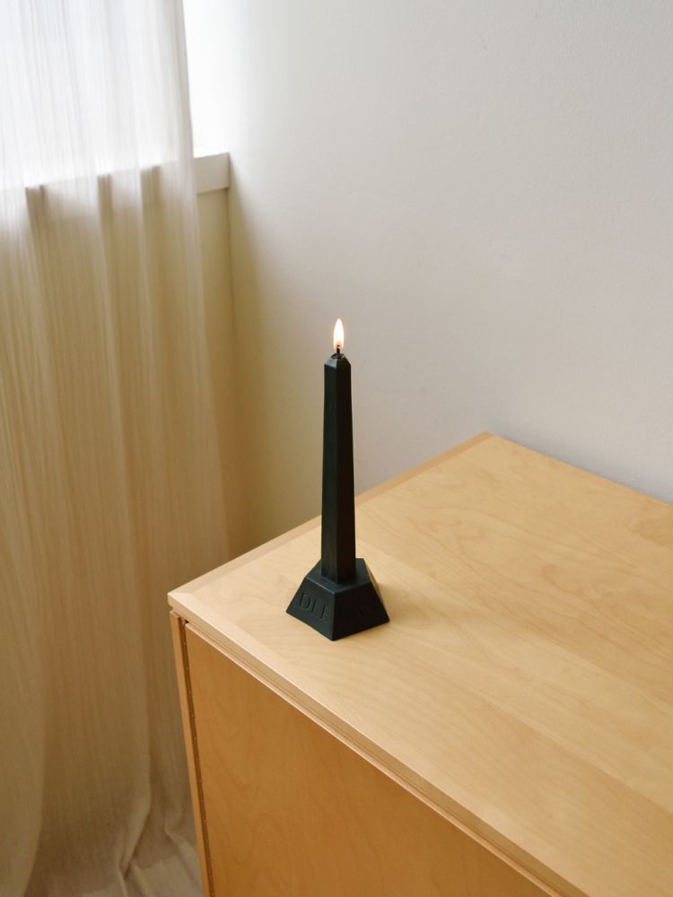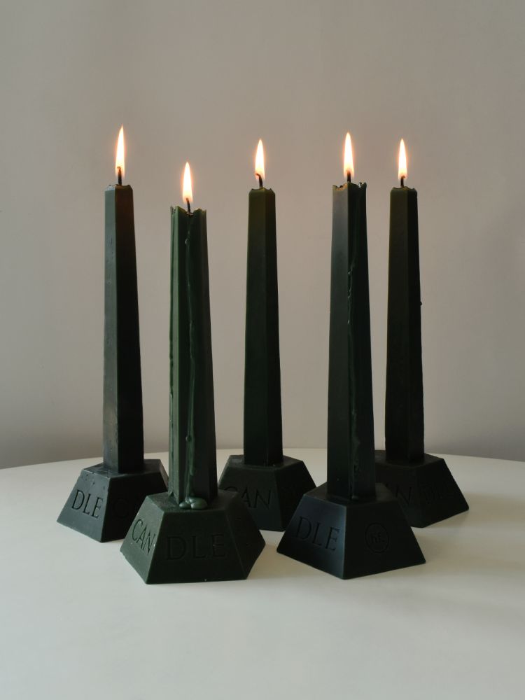 기둥 부분은 길고 직선적인 형태로 공간을 더욱 우아하게 만들어 주며, 비즈 왁스와 소이 왁스를